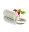 Fresh cheese, made from mozzarella and heavy cream. The outer shell is solid mozzarella, while the inside contains both shredded mozzarella and cream, giving it a unique pulpy texture.